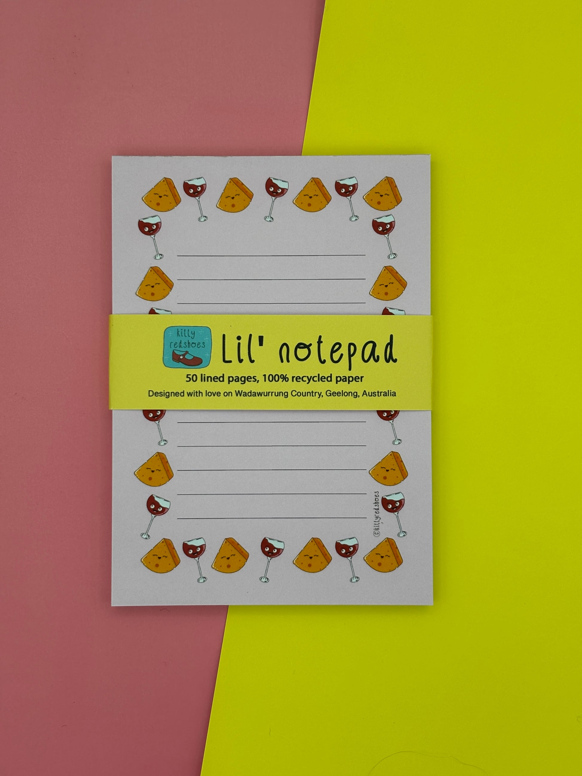 The cutest lil wine and cheese notepad that supports your snacking decisions!